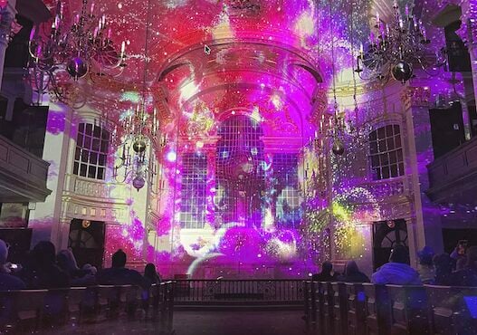 This immersive light and sound installation transforms St Martin-in-the-Fields into a glowing exploration of space and the universe.